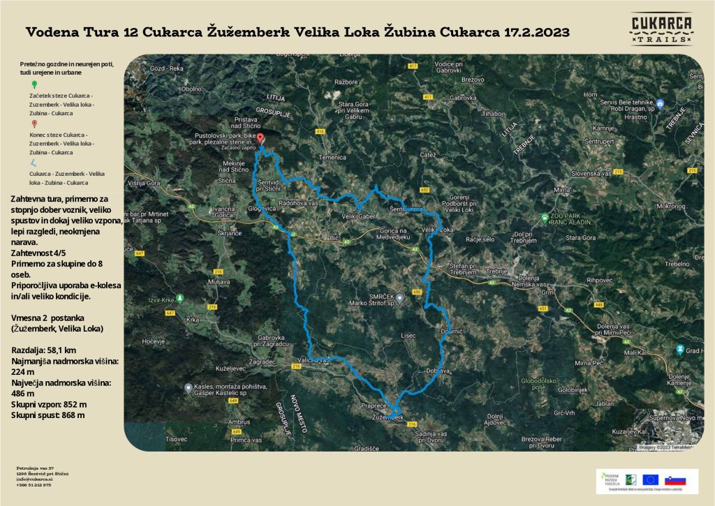 Kam: Cukarca – Žužemberk – Velika Loka – Žubina – Cukarca